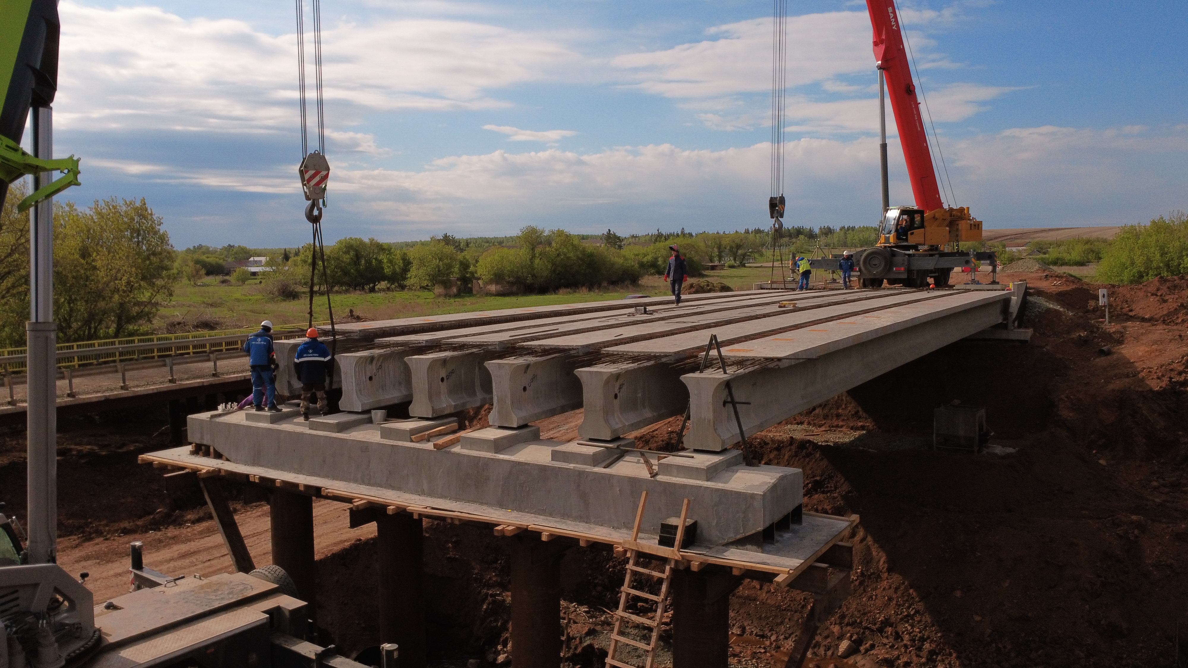 Капитальный ремонт моста начался в 2024 году. Подрядная организация уже выполнила монтаж основных конструкций — береговых опор и пролетного строения. В дальнейшем здесь обустроят новые деформационные швы, уложат гидроизоляционный слой, асфальтобетонное покрытие проезжей части, оборудуют водостоки, барьерные и перильные ограждения. Так как мост находится рядом с населенным пунктом, проектом также предусмотрены пешеходный тротуар и искусственное освещение.